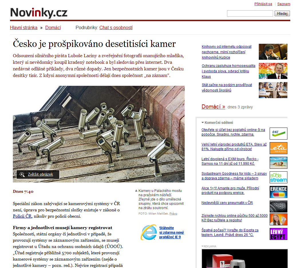 Designboom: "Jakub Geltner bends surveillance cameras into curved installations for exhibition in belgium"