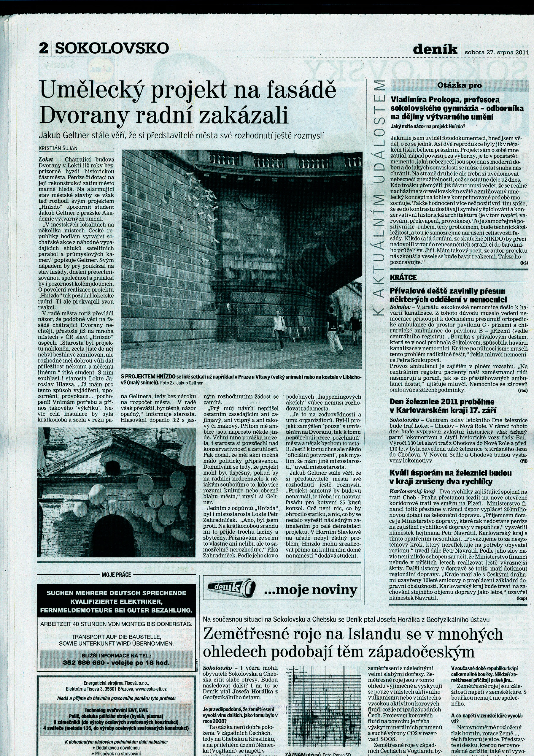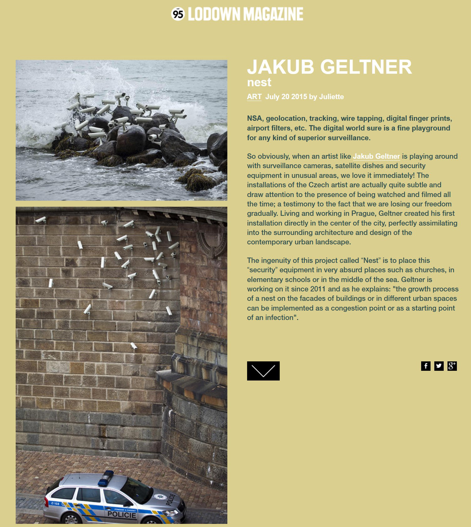 Artelectronicmedia: "Artist Jakub Geltner has developed a series of installations..."