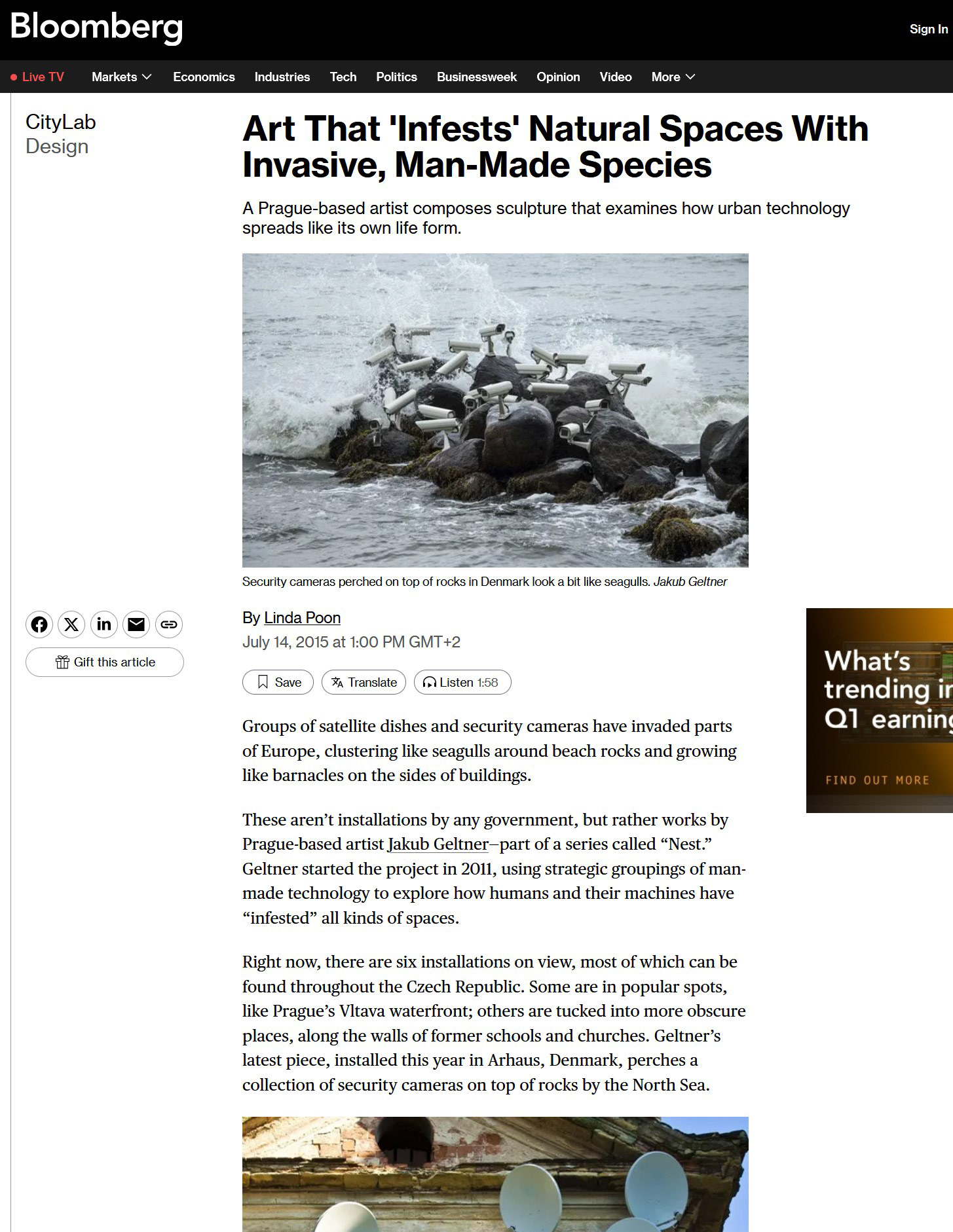This is colossal: "Artist Installs Flocks of Surveillance Cameras and Satellite Dishes in Outdoor Settings"