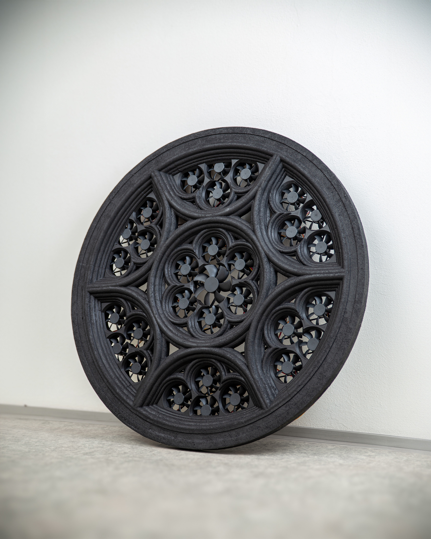 31 PC fans, 3d printed structure, microcontroller, power suply.